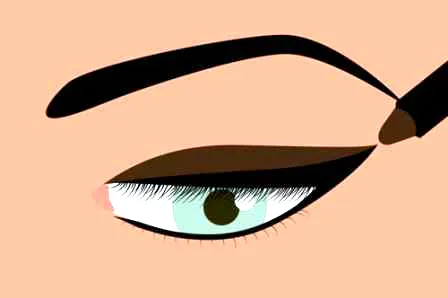 一旦你画好了上翘的黑色眼线,就可以用棕色眼线笔如上图所示,从内眼角平拉到外眼角,并且填满中间。
