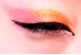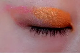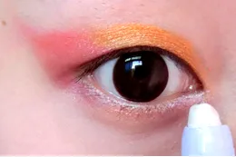 5、再从眼头到眼角的方向用橘色与粉色的眼影画好边框填满。