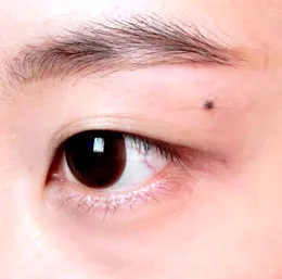 6、用白色的眼影在眼头处打亮,做出卧蚕的效果。