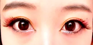 3、接着用淡淡的橘色眼影为眼睛打底。