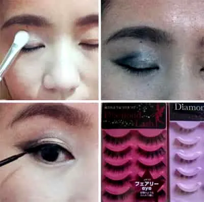 Step8:使用睫毛夹把睫毛夹卷,然后用一副浓密型的假睫毛沿着睫毛根部粘贴在眼线上。