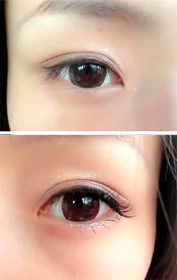 Step8:用纤长型的睫毛膏,沿着睫毛根部往外刷,不够浓密可以重复涂一层。