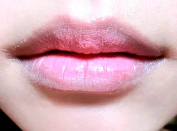 Step10:最后,沿着唇线的部分涂上裸色唇膏,在唇瓣中间涂上粉色唇膏。