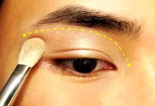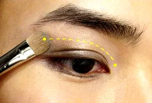 STEP2:涂上浅银色或者米色的眼影,涂满眼窝,提亮眼睛。