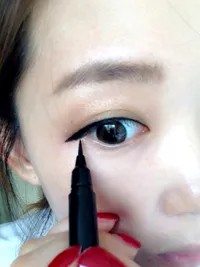 7、再用眼线笔沿着睫毛根部勾画眼线。