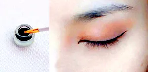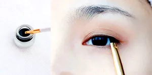 2、然后用黑色的眼线膏细细的沿着睫毛根部勾画。