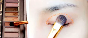1、首先用眼影刷将亚光纯浅棕色涂抹在眼部打底。