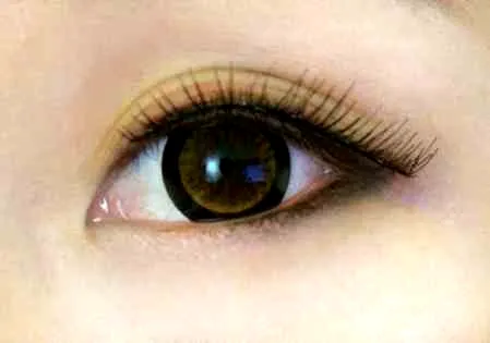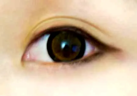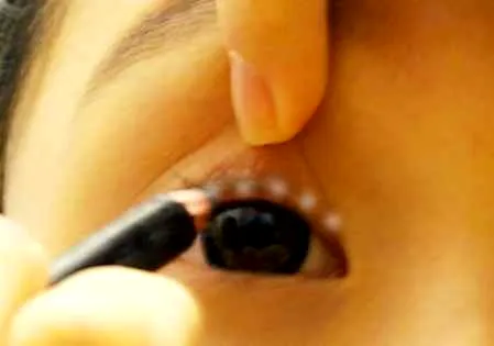 第三步:把眼皮微微提起画内眼线,这样让眼睛自然放大。