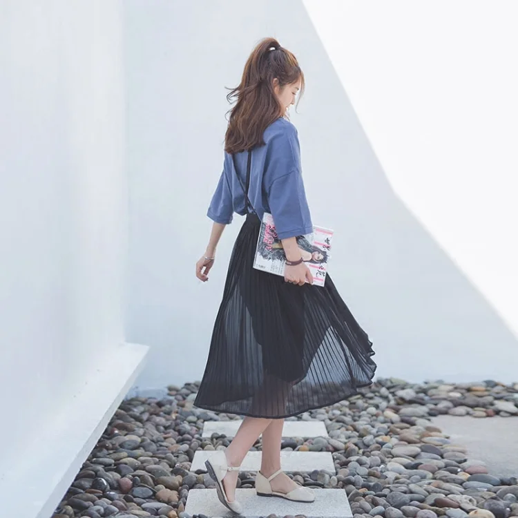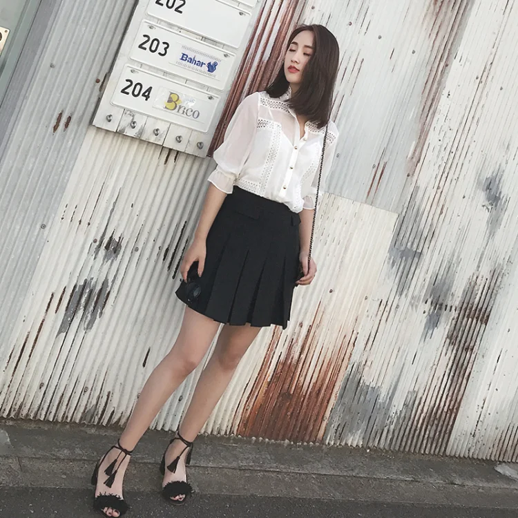 新款黑色高腰a字裙。经典时尚的黑色高腰设计款式,尽显女生的曼妙身姿,添加了今年流行的网纱及荷叶边的元素,让你走在时尚潮流的前端,高腰的a字裙百褶裙上身效果也是极显瘦的。