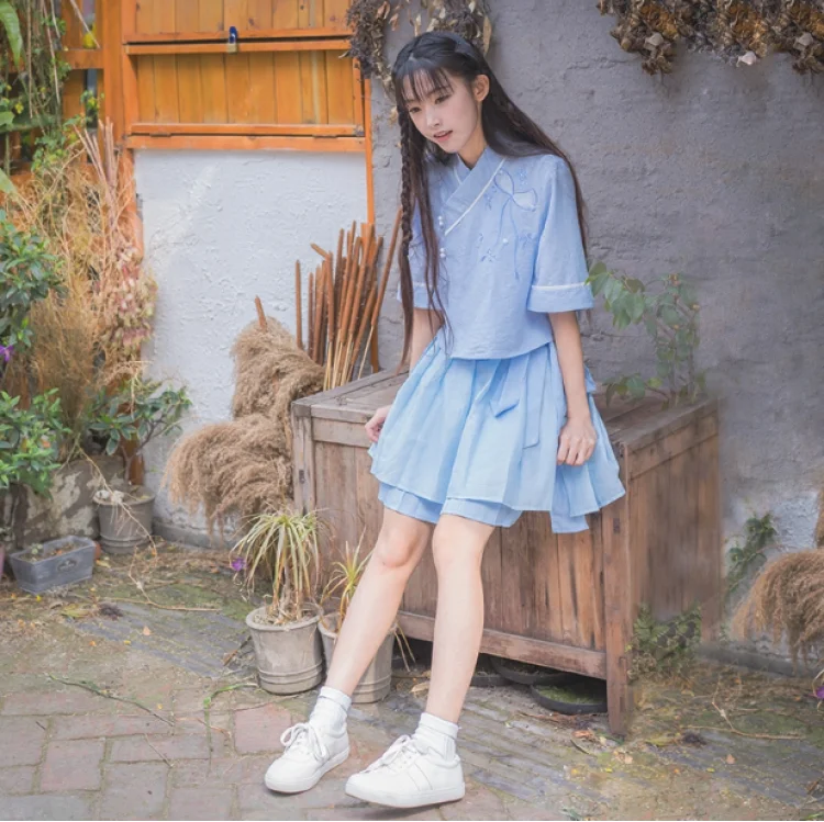新款民国风日常汉服。一席素衣打造浓浓的民国风情,带你走进古典风韵,经改良过得汉服上身效果极好,走在校园中也是一道亮丽的风景线,超级吸睛的哦!同时也能满足妹纸们对古风的热爱哦!