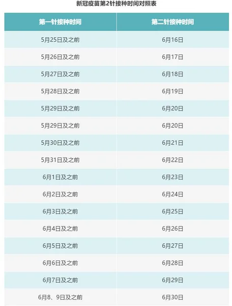 第二针接种时间对照表