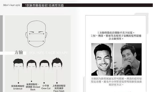 2.短、俐落、紧密等表现男子气概的发型最适合方脸男性。