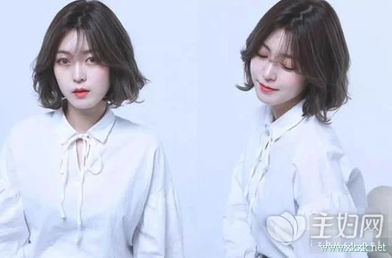 齐脖长度的短发烫出内扣+外翻的造型也是2018年的爆款呢,夏天烫这款短发真的很有范儿哦,整个头发都烫出蓬松感的造型,然后发尾烫的是内扣和外翻,相结合在一起简美哭了,个性时尚,留的韩式空气刘海就带点轻熟风,低调又不失个性,很适合职场的一款发型呢!