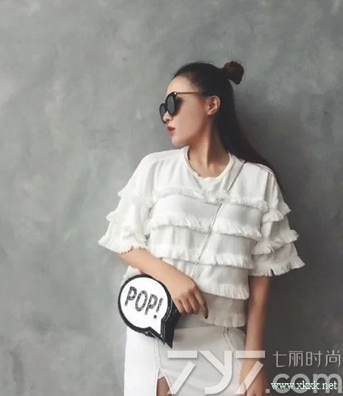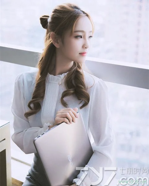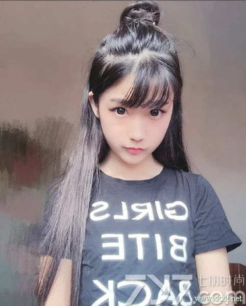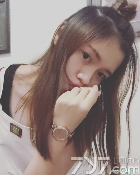 像这种飘飘长直发最受女生喜爱了,一半扎个可爱丸子头一半是长直发,真心觉得可爱没谁,加上空气刘海修饰额头,立马就让一张可人小脸尽显。