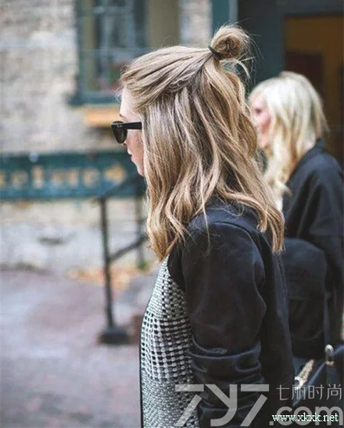 半丸子头不仅在中国盛行,就连欧美潮人也是深爱这款发型,在头顶随意扎一个小丸子头,搭配半披长发很是吸睛,出众这么扎头发可时髦了。