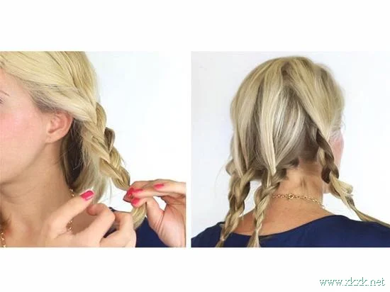 STEP1:先梳顺头发,将头发均匀地分成四部分,扎成四个小麻花辫。