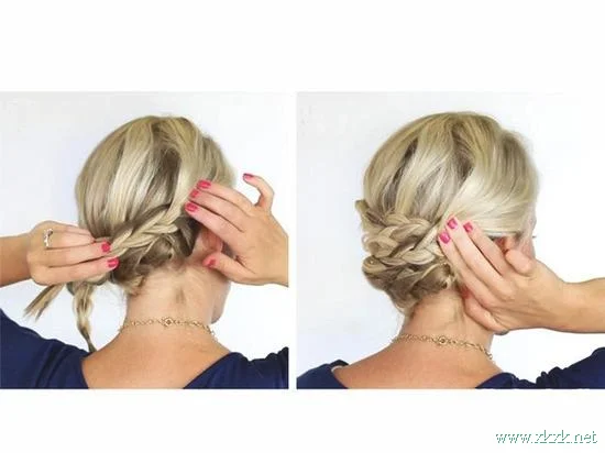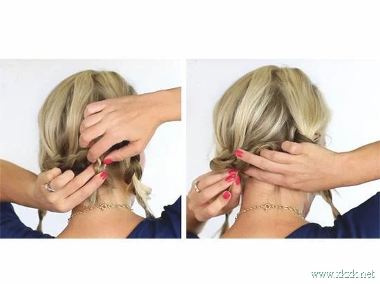 STEP3:将左起第二个小辫缠绕在已有雏形的小发髻上,用发夹固定。