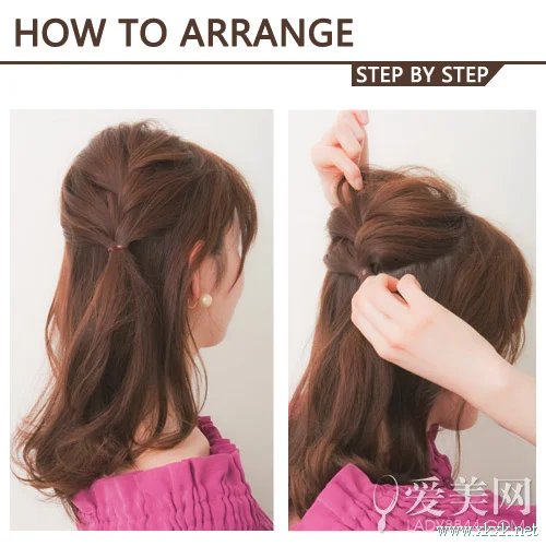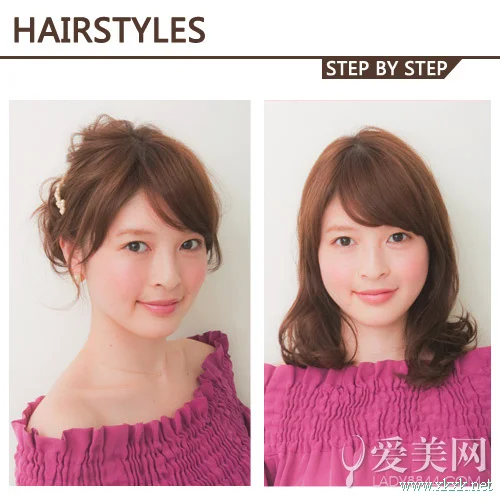 斜刘海中长发甜美修颜,但是盘发让脸部更加的显瘦。是不是觉得盘发让人更加的甜美,赶紧跟着小编来学。