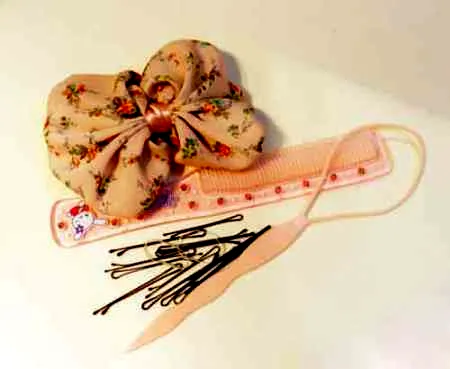 步骤二:要开始咯,我们首先要准备的工具有梳子、皮筋、发卡、蝴蝶结发饰、盘发小工具。