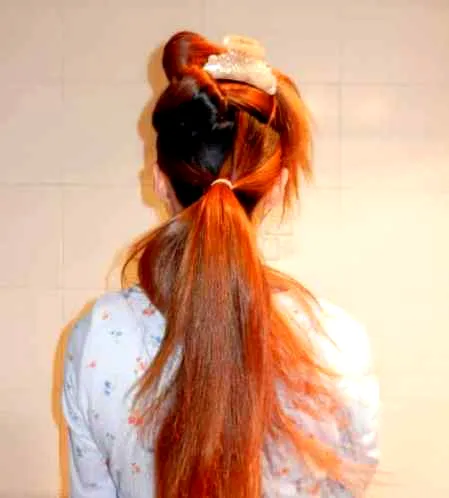步骤八:然后用同样的步骤把留下的发尾全部藏到发包里,用手也可以办到哦,完成后就用发卡固定好,但是不要露出发卡了。