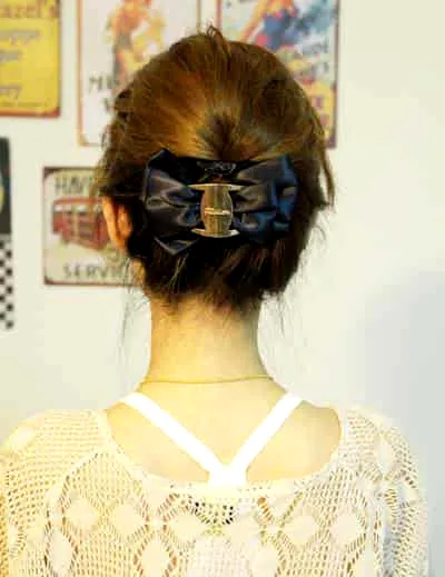 步骤三:最后再戴上一个自己喜欢的发饰就完成啦,超简单哦。