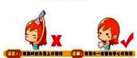 误区一:洗发时在头发上倒洗发水再揉出泡沫。