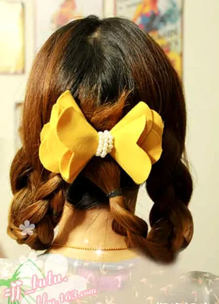 8、最后戴上美美的蝴蝶结发饰,怎么样?很漂亮吧,宛如两只蝴蝶翩翩飞舞!