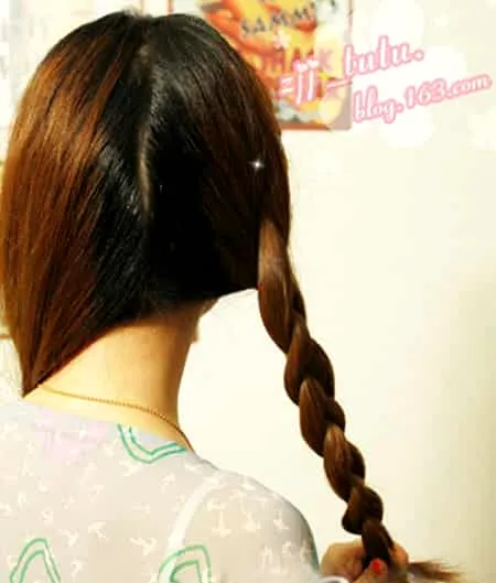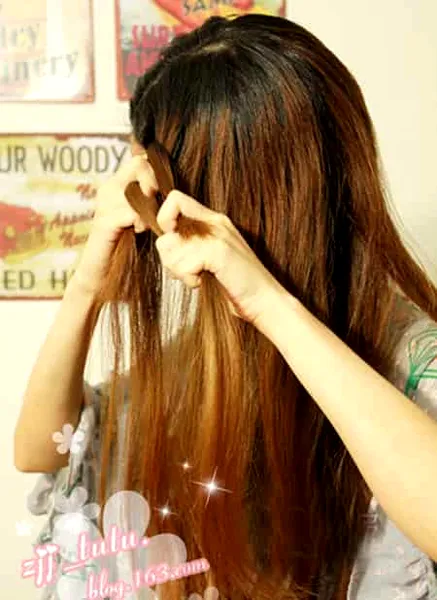 2、头发可以尽量挑少一点没关系,主要是把两侧刘海的头发编进去以防散落。慢慢的编,只要简单的三股辫就可以了。
