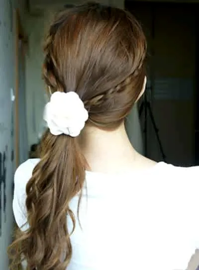 STEP5:把头发松松地扎起来,要是侧边扎哦,有些卷卷的清新的感觉吧。