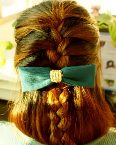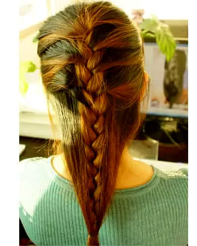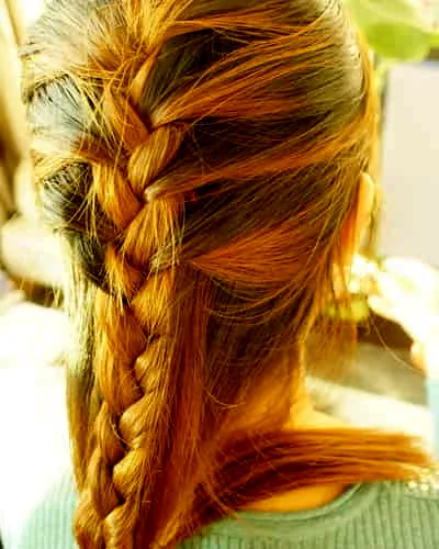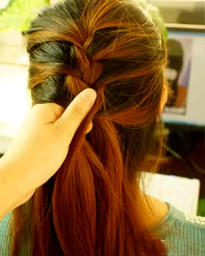 第二步:将蜈蚣辫编织耳后位置,改编平常的三股辫。