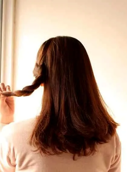 2、从左侧抓出一束头发,开始编麻花辫。