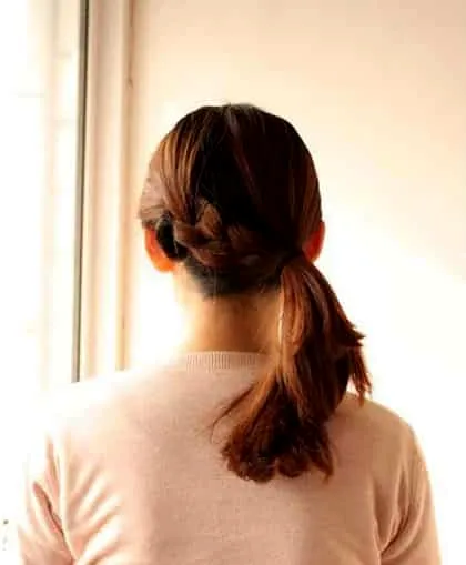 4、如图所示,将辫子和剩下的头发全部绑成一个侧马尾。