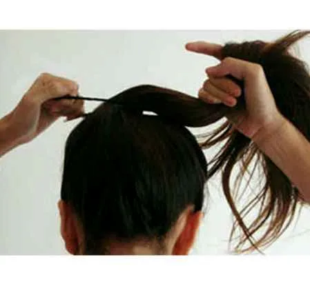 第一步:用手代替梳子,将头发扎成一个高马尾。
