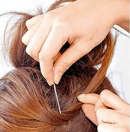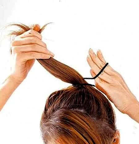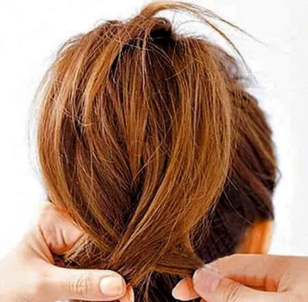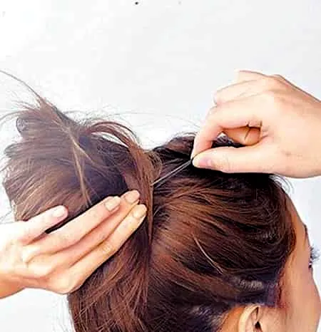 步骤三:抓住马尾辫的尾端,松松地绕成小圆髻并用黑色发夹固定。