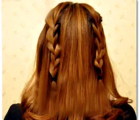 第二步:首先在头发左后和右后部分梳个麻花辫。