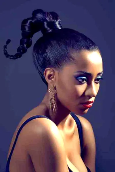 小编点评:就算是短发也要很有型,刘海处制造飘逸的蓬松感,发尾内卷,用定型产品将头发抓成线条清晰的类BOBO头。这样的好处是不会死板,更显自然。