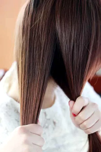 1、首先将全部头发整齐的梳理于右侧(随自己喜好,两边都可以)。在侧边将头发分成两束。