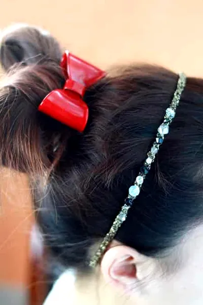 9、最后再戴上靓丽的蝴蝶结发饰,纯纯的俏皮加**,超赞哦!