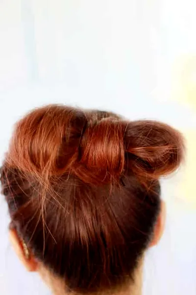 8、这步比较关键哦!将小球从中间分开,多余的头发绕过去,用夹子固定好。有点像个蝴蝶结哦!