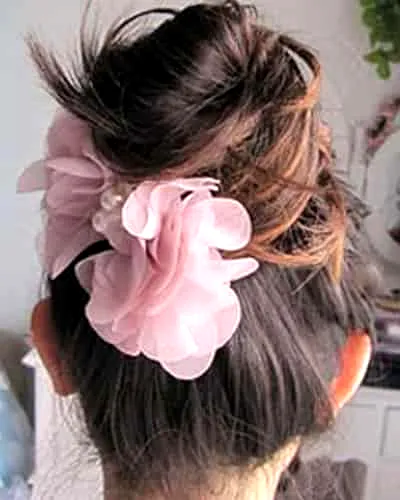 第六步:配上唯美的发饰,唯美的花苞头就完成了。