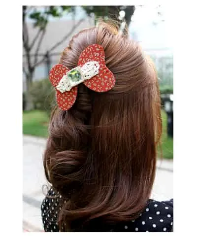 第四步:搭配上美美的发饰,第一款发型就完成了。