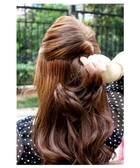这款发型要借用丝带来完成喔!带有一点点的复古风情。