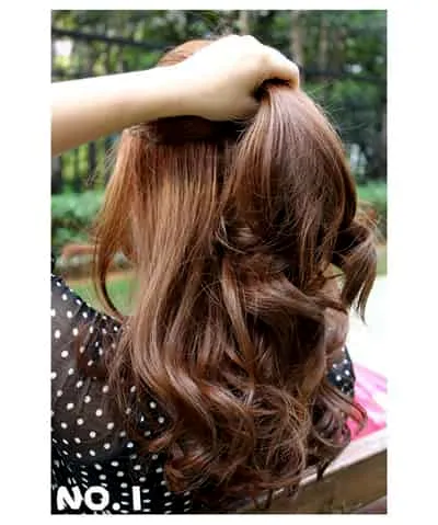 第二步:将头发向内旋转,卷到头发中间的分区线停止。
