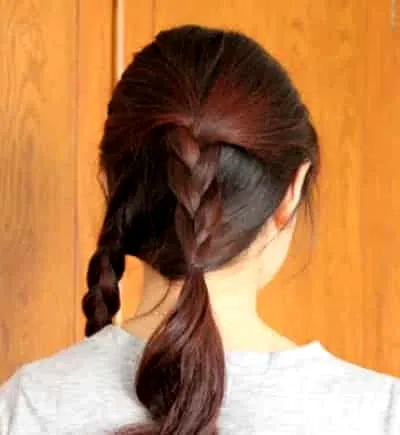 第三步:将下半部分头发斜向一边也编成麻花辫。
