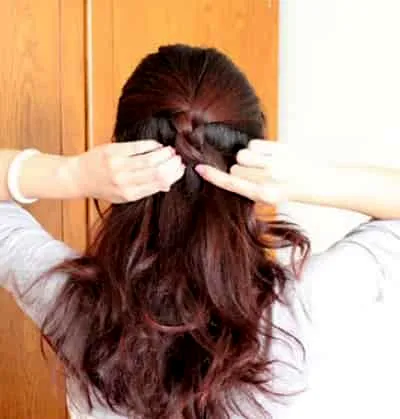第二步:将上半部分头发,垂直编成麻花辫的形状。