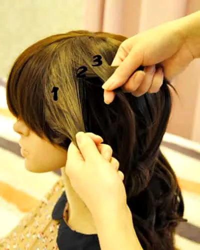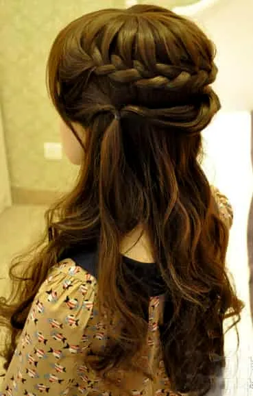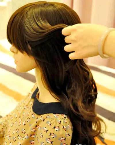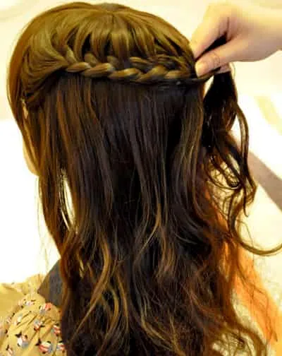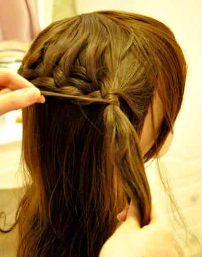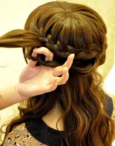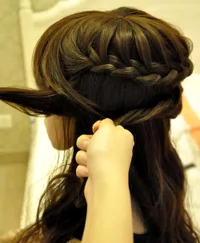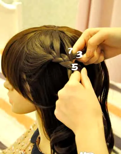 步骤三:在编织辫子的时候,记得将上面的头发分别加入进去。