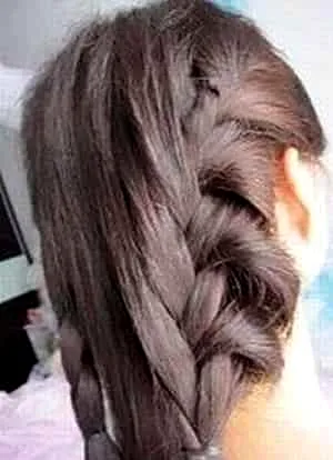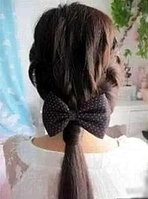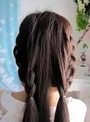 步骤二:然后用皮筋将两股发辫的发尾扎好。