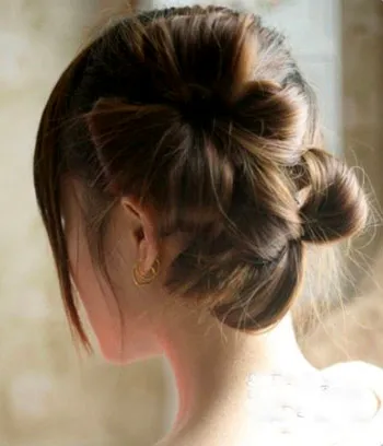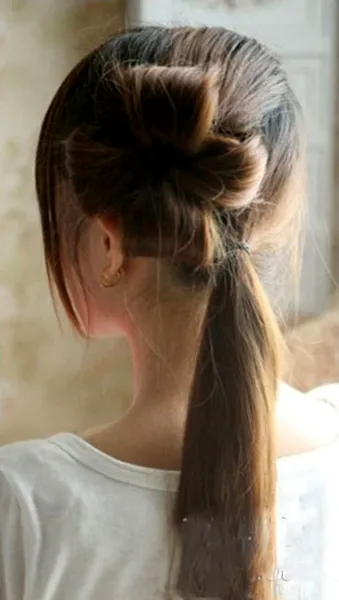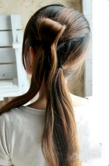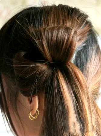 步骤2:将上面的马尾,向里收,扯出一个小小的拱形,注意扎马尾的时候不要太紧哦。