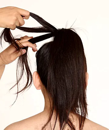 Step1:首先在头顶扎一个马尾,当然是高一些更好。