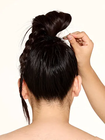 Step6:最后将麻花辫缠绕在上面就好了,很简单但是看上去很有带感。